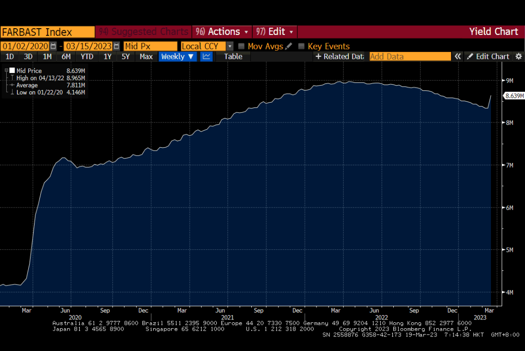 Two dramatic policy actions last weekend rescued the depositors of Silicon Valley Bank, and put the much-feared banking systemic risk to rest. The first was the FDIC provided guarantee for all the SVB depositors (above US$250,000). The second was the Fed set-up the Bank Term Funding Program (BTFP) where-by banks can post eligible collaterals with the Fed (UST, Agency Securities, and Agency MBS) at face value, regardless of market price. What it means is banks can post under-water securities with Fed at PAR value, regardless of the market value. If the BTFP program has been in-placed a week ago, SVB would not have gone under.