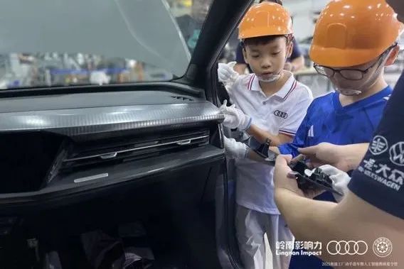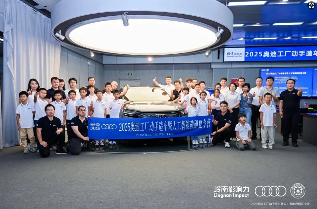 2025年8月17日,由岭南影响力、中山大学多家校友会、岭南数字论坛、广东省人工智能通识虚拟教研室等单位联合一汽-大众汽车有限公司佛山分公司共同发起的“2025奥迪工厂动手造车暨人工智能教研夏令营”在佛山圆满落幕。本次夏令营吸引了来自全国多地的20名中山大学校友子女(9-17岁中小学生)参与,是国内首个融合人工智能理论与汽车制造实践的双轨制教研项目。