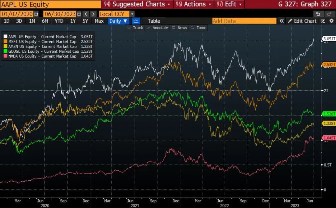 世界上只有 5 家公司的市值超过 1 万亿美元:苹果、微软、谷歌、亚马逊和英伟达。特斯拉和 Meta(之前 Facebook 跨越了 1 万亿美元大关),但已经跌破了 1 万亿美元。