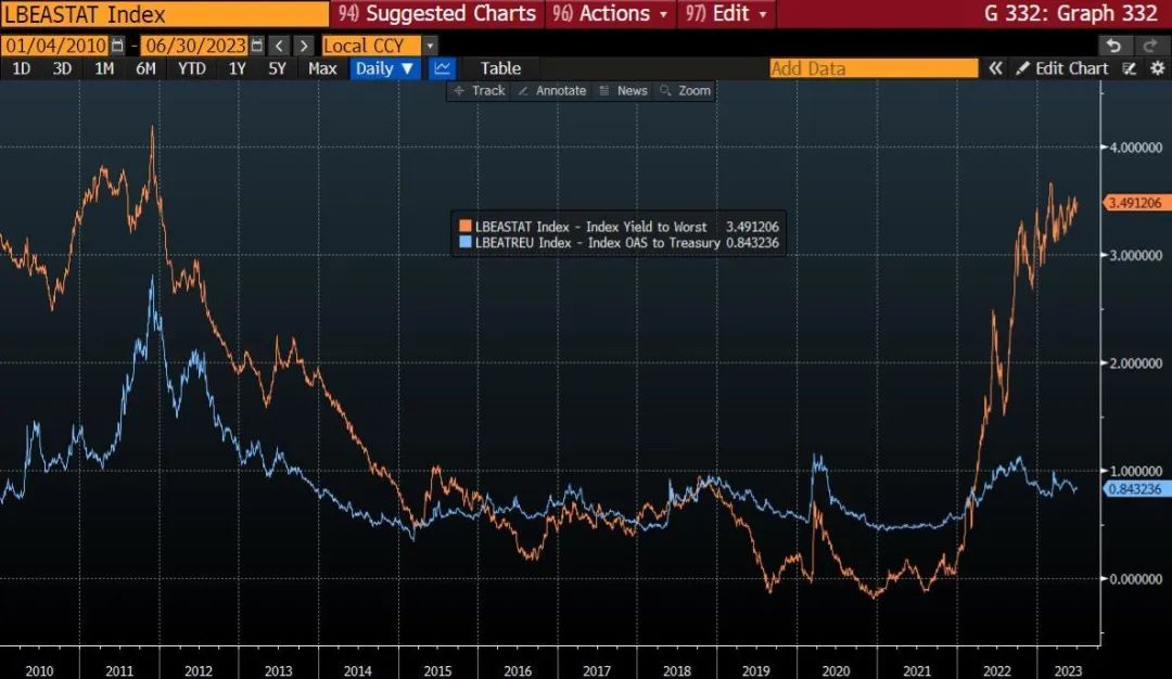 然而,我对欧元区信贷市场不太乐观,相对于货币政策和通货膨胀,信贷利差太紧。